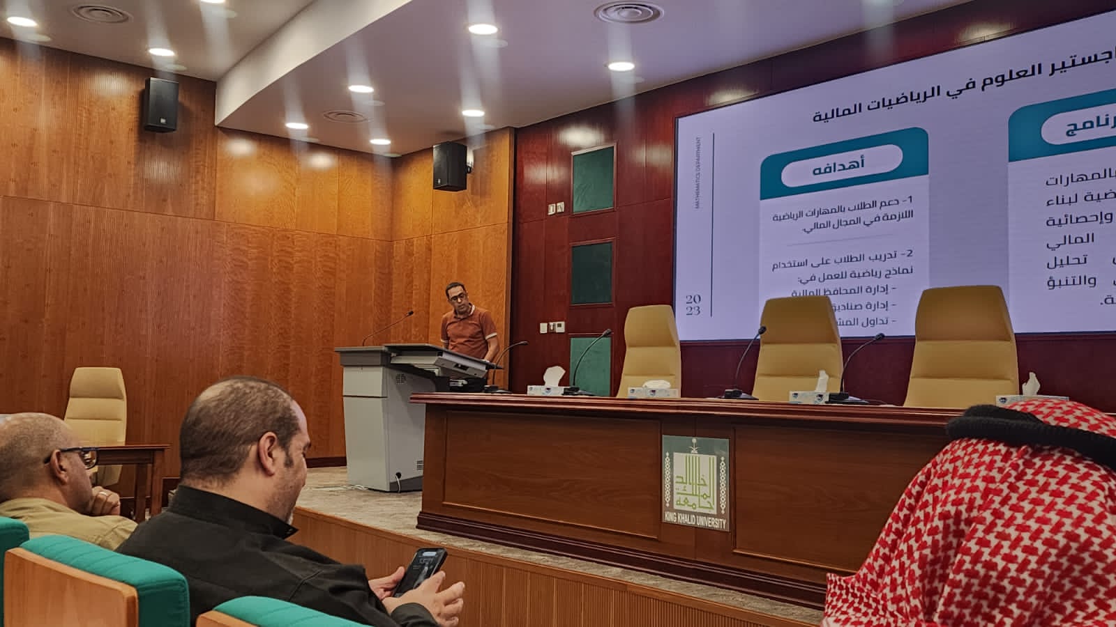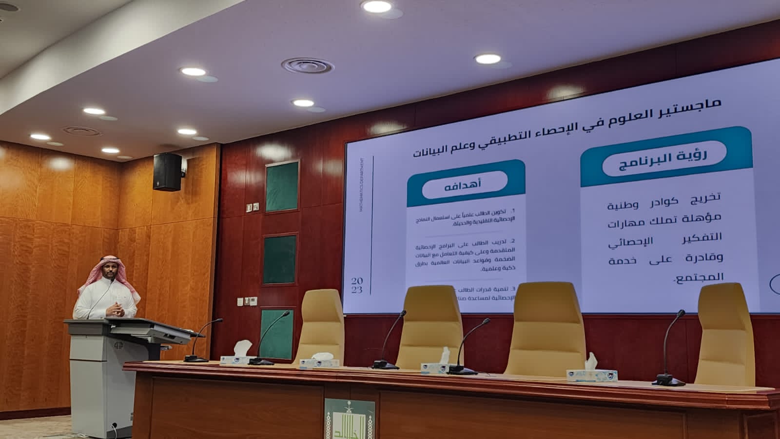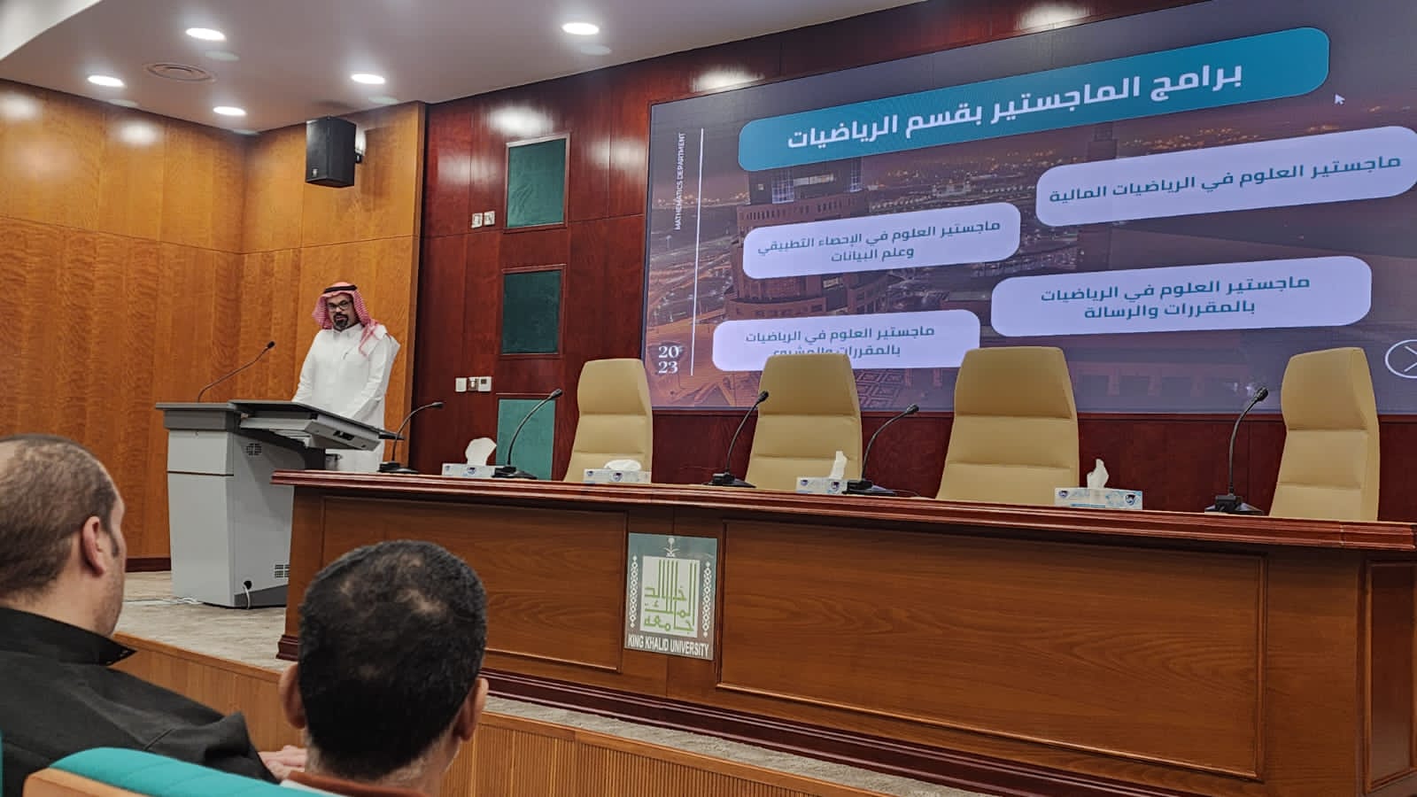 اقام قسم الرياضيات بكلية العلوم لقاءً تعريفيا لطلاب وطالبات الدراسات العليا في البرامج الاربعة في القسم غير المدفوعة الرسوم ماجستير مقررات ورسالة ماجستير مقررات ومشروع بحثي و البرامج المدفوعة التي تم اتاحتها للقبول لهذا العام 1445 وهما ماجستير الرياضيات المالية وماجستير الاحصاء التطبيقي وعلم البيانات وقد تم اللقاء بحضور سعادة رئيس القسم الدكتور يحيى المالكي وعدد من اعضاء هيئة التدريس وطلاب وطالبات الماجستير حيث تم استعراض طبيعة البرامج ومتطلباتها والتعريف بلوائح الدراسة والتقييم ووكذلك الخدمات التي توفرها الجامعة للطلاب والطالبات لتسهيل تحصيلهم العلمي وختم اللقاء بحث الطلاب على الاجتهاد والسعي لتطوير قدراتهم متمنين لهم مسيرة علمية متميزة.