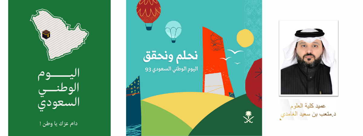يتقدم عميد كلية العلوم باسمه ونيابةً عن منسوبي ومنسوبات الكلية بالتهنئة إلى مقام خادم الحرمين الشريفين وإلى ولي العهد حفظهما الله بمناسبة ذكرى اليوم الوطني السعودي 93 للمملكة العربية السعودية حفظ الله وطننا الغالي قيادة وشعباً وادام الله علينا نعمة الامن والامان.
